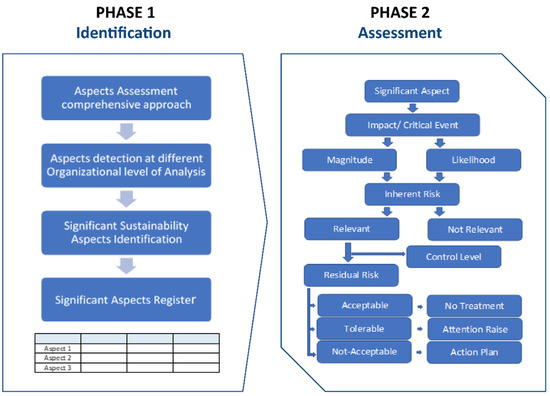 The identification of significant sustainability aspects and sustainability risks/opportunities is a relevant step (Phase 1). The developed proposal in this study provides a systematic approach to identify these, focusing on the goals and strategies of the company, its governance, and the applicable laws and regulations, as well as its effectiveness and efficiency with respect to sustainability interactions.