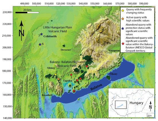 - Horváth, G.; Lóczy, D. Geoheritage, Geoconservation, Geomorphosites in Hungary. In Landscapes and Landforms of Hungary; Volume World Geomorphological Landscapes; Lóczy, D., Ed.; Springer: Heidelberg, Germany, 2015. [Google Scholar] [CrossRef]
