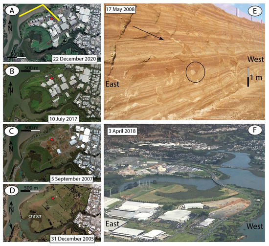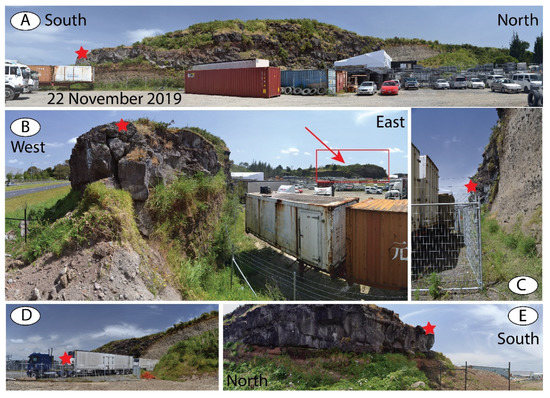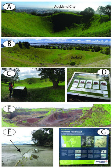 - Hayward, B.W. Volcanoes of Auckland: A Field Guide; Auckland University Press: Auckland, New Zealand, 2019; ISBN 9781869409012. [Google Scholar]