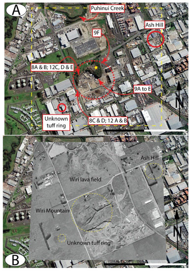 - Hayward, B.W. Ash Hill Volcano, Wiri. Geocene 2008, 8–9. Available online: https://www.researchgate.net/publication/256767533_Ash_Hill_volcano_Wiri (accessed on 7 June 2021).