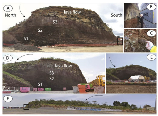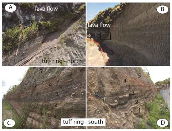 - Kereszturi, G.; Nemeth, K. Sedimentology, eruptive mechanism and facies architecture of basaltic scoria cones from the Auckland Volcanic Field (New Zealand). J. Volcanol. Geotherm. Res. 2016, 324, 41–56. [Google Scholar] [CrossRef]