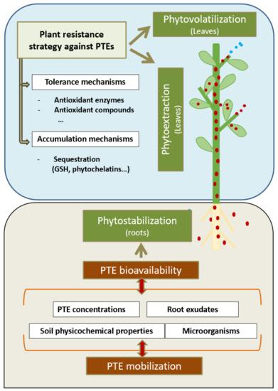 Once the plants to be used have been selected, a preliminary study of their PTE accumulation capacity and tolerance mechanisms is recommended (Figure 1) [17,18] in order to assess the suitability of these plants for AML phytoremediation.