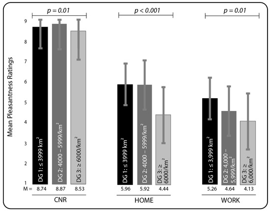 Mean pleasantness ratings of the DGs across the CNR, home, and work contexts.
