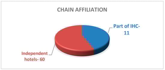 A large number of authors, in addition to better financial performance, add better competitiveness, corporate image, more effective marketing, increasing brand value, greater trust from tourists, which affect the improvement of all performance and business performance of the hotels significantly [26,40,41,42,45,46,47,48,49,52,53,54,55], helps better promotion and greater capacity utilisation [38,56,57,58,59,60], which, altogether, contribute to hotels and reaching a leading position in the industry [55].