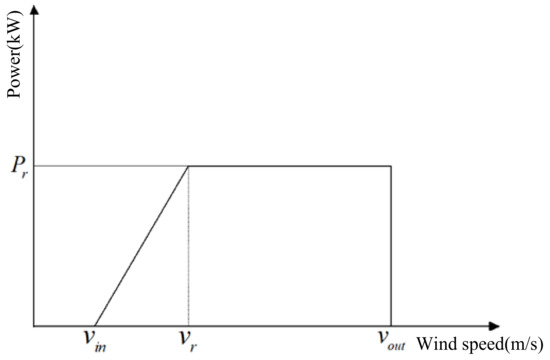 The relationship between wind power and wind speed satisfies the wind turbine power characteristic curve, as shown in Figure 2.