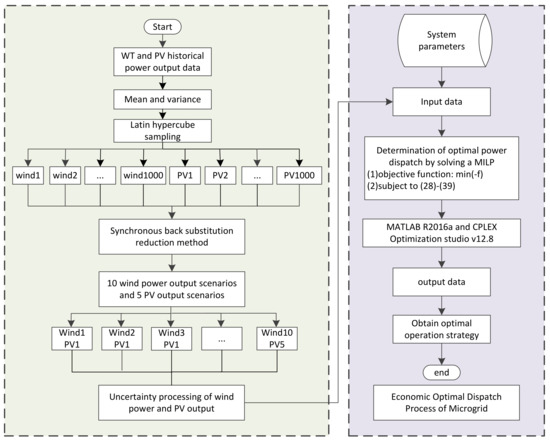 With the increasing of greenhouse gas emissions and the worsening of global environmental problems, as well as the commitments made by countries to carbon peaks and carbon neutrality, renewable energy power generation has gradually attracted wide attention from various countries. However, renewable energy such as wind and solar energy is greatly affected by the environment, and the uncertainty and intermittence of its power generation has brought huge challenges to the power system’s safe operation [1]. Renewable energy mainly improves the consumption capacity through the construction of market mechanisms. However, renewable energy is difficult to directly participate in the market transaction due to its small scale and high volatility. As an important carrier of renewable energy, the microgrid has increasingly become an important part of the design of power market mechanisms. By combining renewable and non-renewable distributed energy resources, battery storage, loads, and demand responses, microgrids can facilitate the consumption of renewable energy with unpredictable and highly intermittent characteristics [2]. In 2015, the State Council has issued a guideline named “Several Opinions of the Central Committee of the Communist Party of China and the State Council on Further Deepening the Reform of the Electricity System” (ZF [2015] No. 9), marking the official launch of a new round of power market reform in China. In the new round of power market reform, the government has clearly put forward the requirements of opening the electricity sales side, enriching the types of market entities, and allowing microgrids to participate in the power market transactions as a market entity [3]. With the continuous deepening of power system reform, the spot market has become the core and focus of China’s power market construction. From the perspective of market participants, microgrids are new entrants in the deregulated electricity market, and they face various challenges and opportunities in the spot market [4]. The construction of the spot market provides a strong market mechanism guarantee for the consumption of renewable energy such as wind and PV power in the microgrid. However, under the influence of uncertain factors such as market price, renewable energy power output, and electric load, the economic dispatch of microgrids in the spot market has become a challenge. Therefore, the research on the decision-making optimization model of microgrids’ participation in the spot market has practical needs and important significance.