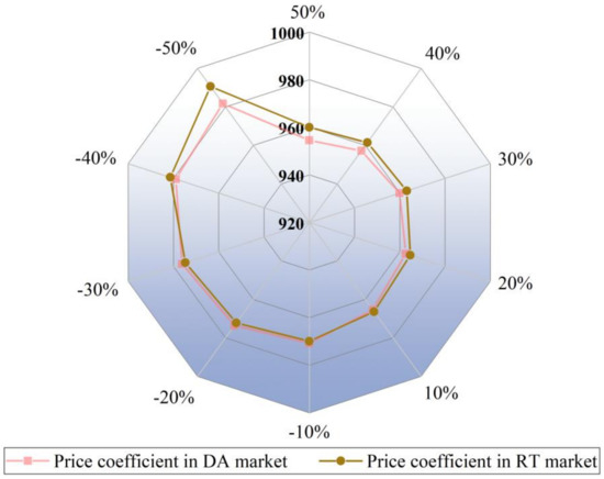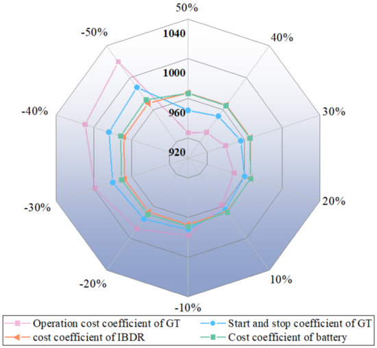 - The sensitivity analysis method is used to analyze the impact of each cost coefficient and market price coefficient on microgrid revenue. On the one hand, it verifies the stability of the optimization model. At the same time, it also provides a reference range for the setting of the market price coefficient.