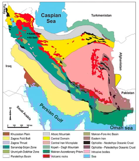 Figure 2). It is consisted of several microcontinental blocks and is bounded by the marginal fold-and-thrust belts of the Zagros and Makran in the south, the Alborz and Kopeh-Dagh in the north, and the Sistan accretionary wedge in the east [