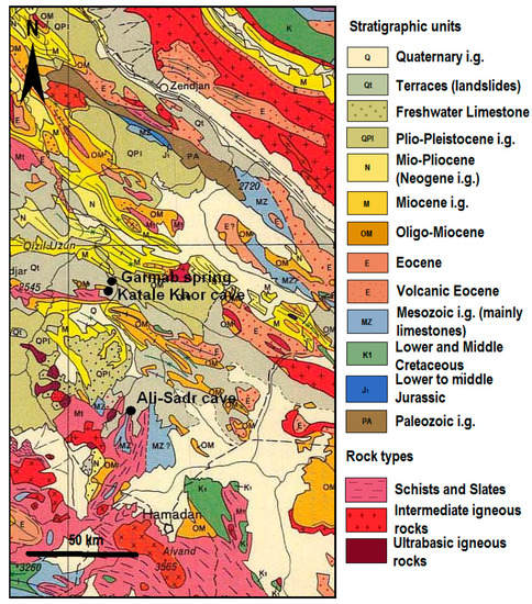 The Katale-Khor cave is formed in the body of Saqiz-lo Daghi mountain and in the Qom limestones of Oligo-Miocene age. In terms of design and pattern, the cave is of simple and anastomotic type. Ali-Sadr cave is developed in crystallized limestones and Jurassic schists. Ali-Sadr cave is one of the most unique and scenic caves in the world. One of the features that makes Ali-Sadr cave special is a fact that it is the longest and the biggest water cave in the world from the point of the boating course inside the cave.