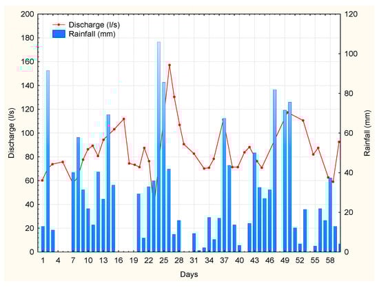Figure 7 shows water discharge quantities at the Garmab spring for two months timespan (August and September). The ratio of flood discharge to baseline discharge reaches a maximum of 3. The discharge of these springs does not change much during rainfall. This means that below the current water table the karst features are not as developed as in the higher parts of the karst aquifer. Different hydrogeological parameters, such as recession coefficients at the surrounding springs, show low karstification of the aquifer. This is in dissonance with well-developed surface geomorphological phenomenon, like caves, shafts and big talars, which implicate higher degree of development of subsurface karst.