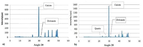 Figure 8 shows XRD results of samples of both presented caves. Both caves are developed in carbonate rocks and determination of dominant mineralogical composition can explain some aspects of cave development. X-ray diffraction allows a distinct differentiation between calcite CaCO