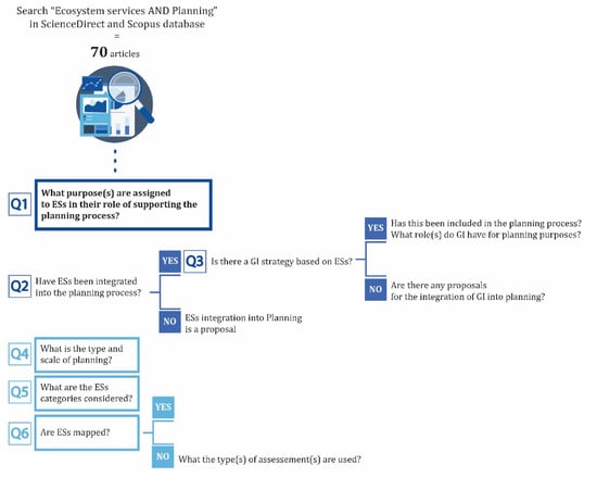 - ES mapping [Q6]. The addition of this aspect could serve to verify whether the current studies are still mostly focused on the spatial modelling of ESs or whether, in addition to these important assessments, an extra step has been taken by trying to integrate them into the planning process using the considerations derived from their mapping.
