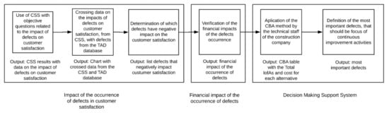 Therefore, the proposed method uses data from technical assistance departments and customer satisfaction surveys, where information about the users’ level of satisfaction and the occurrence of defects are available. These aspects are then analyzed through the Choosing by Advantages (CBA) method to support the decision-making process to prioritize which defects are the most important to be addressed by continuous improvement activities. A case study, where data are obtained from a construction company, is deployed to test and validate the method. An implication of this case study is that challenges and barriers associated with the method could be noticed. Moreover, the results point out important capabilities needed by companies to correctly assess the impact of defects, such as correctly logging data and having skilled personnel to verify defects users might have complained about.