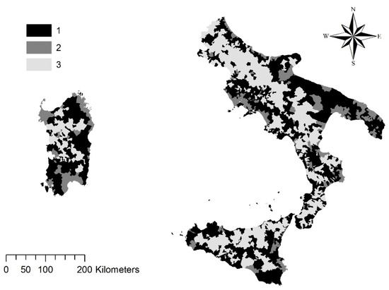 Classification of Southern Italian municipalities based on the results of a k-means clustering.