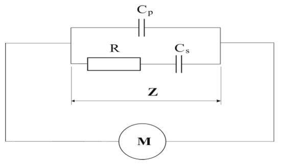 RCC equivalent model for measuring of electrical properties of apple juice (Z—impedance; R—resistance; Cs—series equivalent capacitance; Cp—parallel equivalent capacitance; M—measuring device).