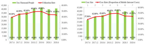 Scale of Users of Online Takeout Business and Mobile Online Users in China from 2017 to 2020. Data sources: www.baidu.com (accessed on 15 March 2021); CNNIC Internet Data Report.