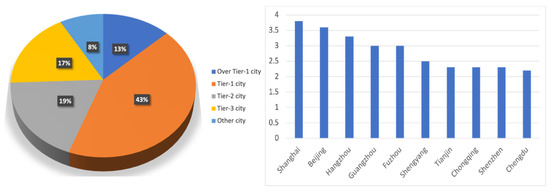 Distribution of the Meituan Takeout Users in Different Cities. Data sources: www.baidu.com (accessed on 15 March 2021); CNNIC Internet Data Report; Foresight Industry Research Institute, Analysis report on China’s online takeout business model and investment strategic planning, etc.