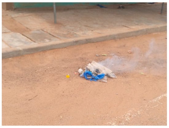In a widespread practice in Ghana, children participate from an early age in the hoarding of plastic waste and its subsequent burning as a common disposal procedure, as shown in Figure 5. This practice results in the release of toxic heavy metals and greenhouse gases, such as dioxins and furans [27]. It also contributes to the deterioration of the environment, global warming, and the acceleration of the climate crisis that is affecting our planet [29]. This proves that government policy efforts to address plastic pollution are insufficient and immediate action is required to regulate and restrict the unnecessary use of plastic and promote its reuse instead.