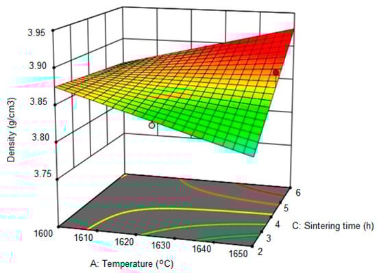3.2. Analysis of Sintering Density with the Response Surface Method