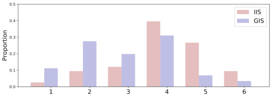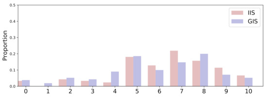 - Information was sufficient to receive an accurate immediate impression about client and event circumstances: “one can say that [based on data of GIS] you can have a picture [of the situation] which, I would say, largely corresponds to reality” (D1).We asked CRPAS professionals to evaluate the level of detail of client’s picture that one can make based on information from GIS and IIS, by assigning a rating from 0 to 10 where 0 meant “available information is completely insufficient” and 10 “available information is completely sufficient” to reproduce a detailed picture. The average rating of information available in GIS stood at 6.443, its median made up 7 and IQR (5, 8). Respective indicators for information available in IIS were 5.943, 6 and (5, 8). Both estimates are significantly different from 5. Therefore, we may conclude that, based on opinion of respondents, available information was sufficient for reproducing a rather detailed picture about client (see Figure 3).