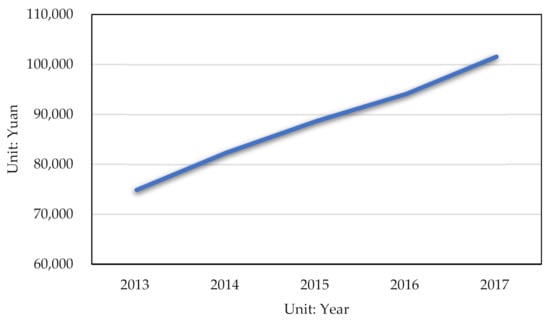 The average wage of the thermal power industry from 2013 to 2017.