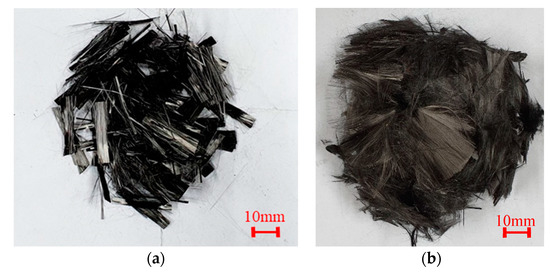The appearance of chopped carbon fiber: (a) Normal carbon fiber, (b) Carbon fiber without coupling agent.