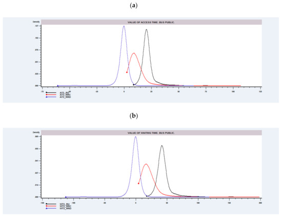Under the RUM approach, and since the alternatives’ utility is explained only by their own attributes, the willingness to pay also coincides with the quotient between the marginal utilities obtained from the unconditional utility. This function is represented by the expected maximum utility (EMU), which is the utility experienced by an average consumer representative of the population. Under the assumptions of the multinomial Logit model, the expected maximum utility is represented by the well-known LogSum formula, widely used in welfare analysis [41].