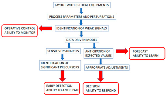 A weak signal indicates a possible degradation of the system’s resilience and represents a decreased ability to cope with unexpected and unforeseen disruptions. They are seemingly random or disconnected pieces of information that at first appear to be irrelevant but can be recognized as part of a significant pattern by viewing them through a different frame or connecting them with other pieces of information. Weak signals can be identified starting from the risk assessment process and can be found in the Fault Trees MCSs (Minimal Cut Sets), by analyzing how the process variables oscillate around the set points.