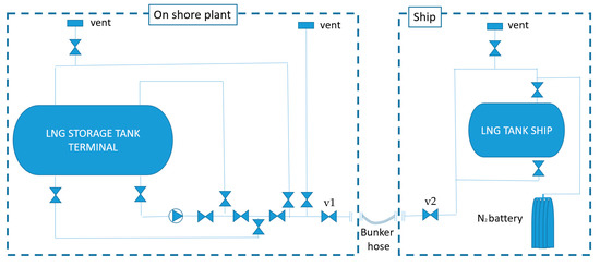 For the purpose of this paper, the resilience assessment will be carried out for the case of shore-to-ship refueling and a schematic layout is depicted in Figure 2 [40]:
