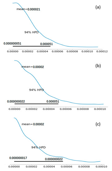 The posterior probabilities are then evaluated by the means of HPD (highest posterior density), as shown in Figure 5.