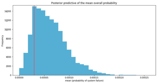 Posterior predictive distribution and mean probability of system failure.