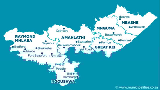- RMFRIDP. Raymond Mhlaba Final Reviewed Integrated Development Plan 2020–2021. 2020. Available online: http://www.raymondmhlaba.gov.za/system/files/data/IDP-SDBIP/June-2020/Final%20IDP%202020-2021.pdf (accessed on 3 March 2021).