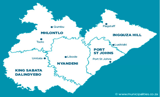 The municipality is situated in the OR Tambo District of the Eastern Cape on the coastal region of the Indian Ocean in the former Transkei homeland. It comprises one urban area and has about 130 rural areas [40]. It is hemmed in by Lusikisiki in the north, Mthatha in the south and Libode in the west. It takes up 11% of the district’s geographical area, making it the smallest local municipality of the five local municipalities in the OR Tambo.