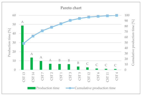 ABC analysis has been modified, by considering production time instead of revenues, as stated earlier: