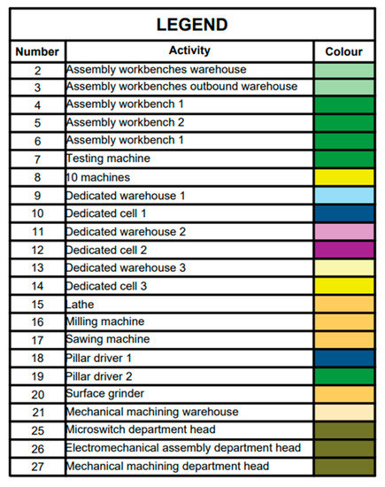 - Suhardini, D.; Septiani, W.; Fauziah, S. Design and Simulation Plant Layout Using Systematic Layout Planning. IOP Conf. Ser. Mater. Sci. Eng. 2017, 277. [Google Scholar] [CrossRef]