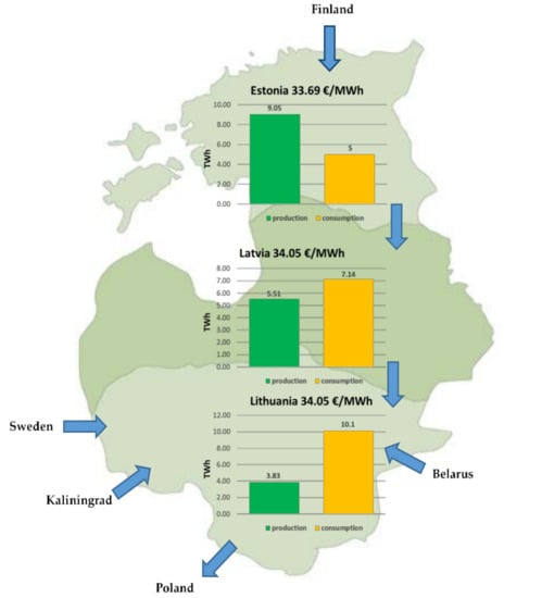 Baltic States’ electricity generation and consumption in 2020 [29,30,31,32].