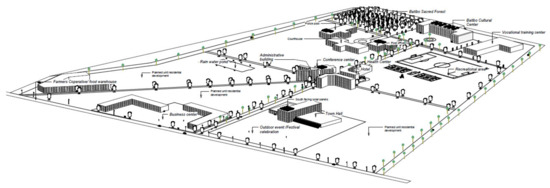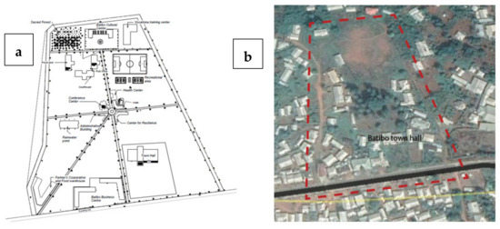 (a) Proposed Batibo town center; (b) Existing site conditions.