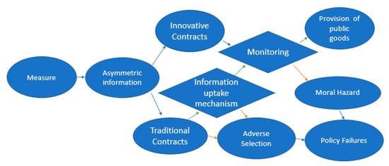 The literature provides several solutions to avoid policy failures and propose discriminatory payment systems or new selection mechanisms. Figure 3 shows how innovative contract solutions and innovative information uptake mechanisms can partially solve the asymmetry problems in the critical points of the policy loop.