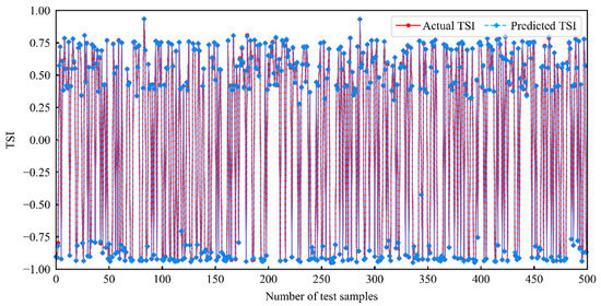where and are the actual and predicted values of TSI of the i-th test sample, respectively.