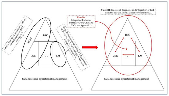 - In the third stage, the KM indicators were integrated with the BSC perspectives and indicators defined in Muñoz’s [39] work. The result is shown in Block C of the table in Appendix A. To achieve this result, the classification criteria shown in Table 2 have been considered.