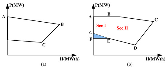 Feasible operation region for CHP units, (a) type I, (b) type II.