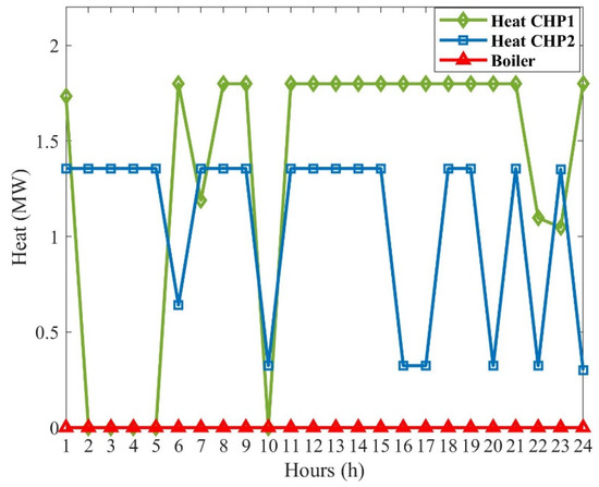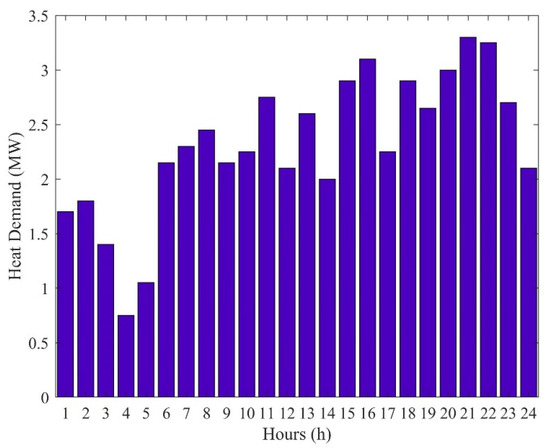where, is the total thermal energy generated in the studied CHP-based microgrid. Considering that the heat storage unit is connected to the heat generation units; each time the heat generation unit is started, the heat storage unit loses energy () and each time these units shut down, the surplus heat returns to the heat storage unit (). The pure thermal energy that can be injected into the heat storage unit is equal to [30]:
