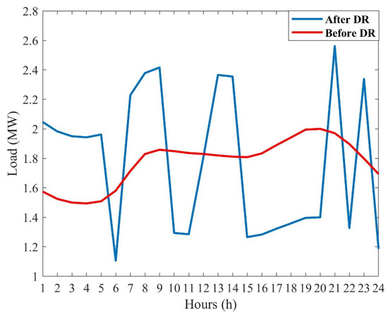 The main objective of the DRP is to transfer the microgrid demand from high-price intervals to low-price hours. In the DRP, only a limited ratio of the electricity demand can be shifted in the entire scheduling period. The final demand of the microgrid is described after applying the DRP as follows: