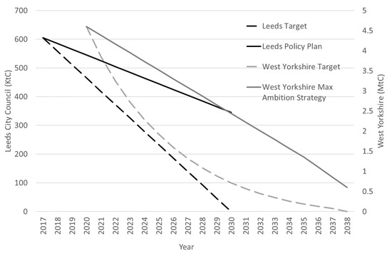 - Tackling the Climate Emergency: Emissions Reduction Pathway Report, West Yorkshire Combined Authority and Leeds City Region Enterprise Partnership, July. Available online: https://www.westyorks-ca.gov.uk/media/4268/emission-reduction-pathways-report.pdf (accessed on 25 March 2021).