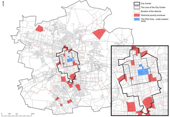 There is also a variation in understanding the concept of neighborhoods, which are considered in different studies as a place, as a community or as a policy unit—as Baffoe [6] outlined in his review paper. Usually, neighborhoods are recognized that are where people reside and spend much of their time. For people living in urban areas, it is argued that neighborhoods are places that determine their quality of life [7]. They are also considered as the best geographical units for studying and understanding behavioral characteristics and social processes [6]. Poor urban neighborhoods—which are sometimes also called deprived, disadvantaged, or socially excluded neighborhoods—have complex social, economic, and physical conditions. The poor neighborhoods or more generally urban marginality are also seen from the macro perspective of the advanced dynamic of capitalism and considered as product of the approach taken to achieving a developed state [8,9,10].