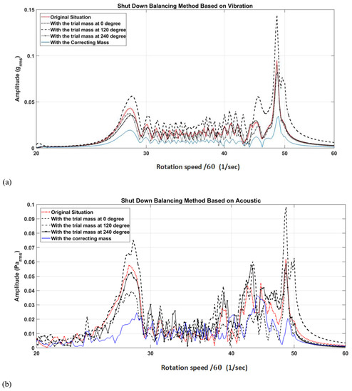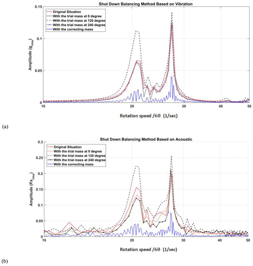- Isavand, J.; Kasaei, A.; Peplow, A.; Afzali, B.; Shirzadi, E. Comparison of vibration and acoustic responses in a rotary machine balancing process. Appl. Acoust. 2020, 164, 107258. [Google Scholar] [CrossRef]