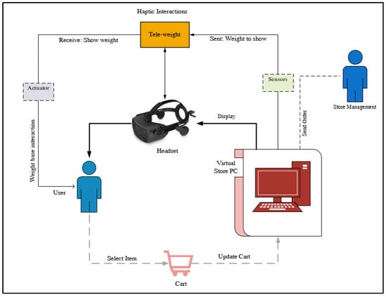Software makers are also in the perspective of introducing virtual stores where consumers can enter the virtual stores and visualize the dimensions and usability of an item prior to purchasing it []. A virtual shopping store is a computer-simulated store where a handler can envisage, feel, and interact with the products and items in the store. Implementation of the virtual store can be a breakthrough in the e-commerce market. Other famous terms for virtual stores are cybernetic stores and computer-simulated 3D spatial stores []. In current e-commerce stores, one of the recorded fraudulent activities is the delivery of an ordered item different from that itemized in the e-commerce store [,,,]. Needless to say, a virtual store can spark a revolution in the e-commerce industry by not only altering the way of shopping but also by making it secure. Haptic devices make physical interaction possible between a human and a computing device by means of sensors and actuators. Humans can interrelate with haptic devices to deliver programming instructions and, correspondingly, schedules can be employed to extract essential information via a haptic interface [,,].