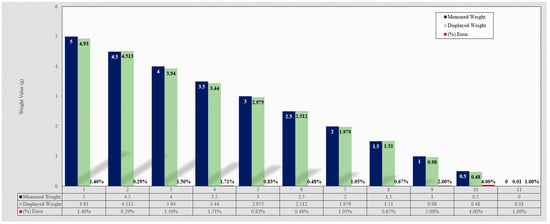 Some degree of error was recorded in reading the measurement and in the demonstration end. A total of eleven trials were recorded, and the current prototype was observed to have some sort of error and thus requires tuning. Owing to the uniform distribution of the weight on the gear, inaccuracy in grams was recorded in the measurement. As the prototype system can show any value between 0 and 5 kg, the results of ten trials are shown in Figure 8.
