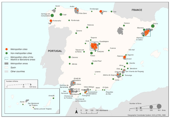 Number of companies in the sample within the cities studied. Source: authors’ own elaboration, from SABI database.
