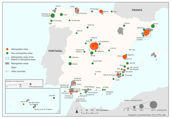 Number of employees in the sample within the cities studied. Source: authors’ own elaboration, from SABI database.